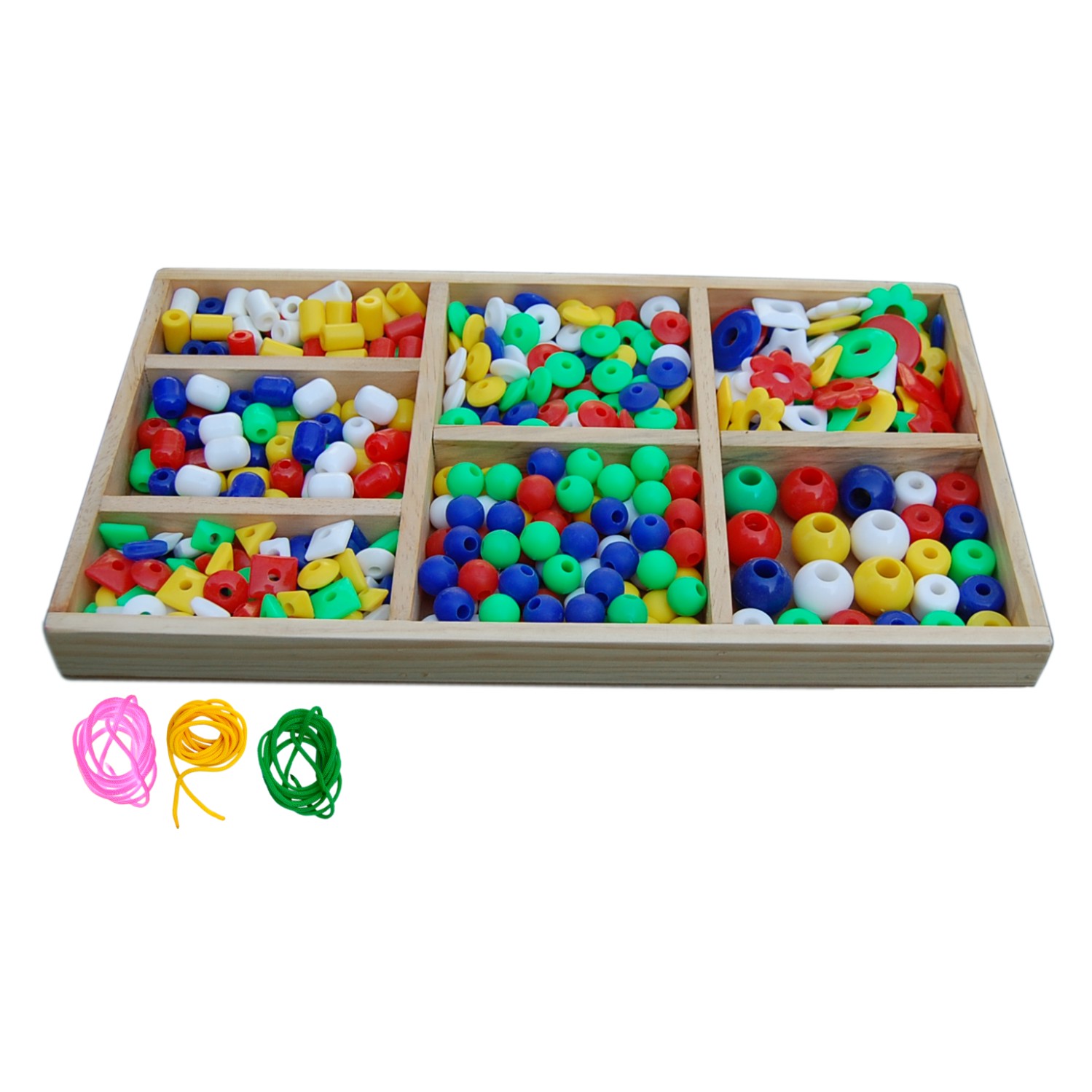 This set of beads helps to generate skills of your child. Different beads with vivid colors helps to grow your child's creative skills. Features Includes 420 beads in 5 colours Size: 456x255x38 mm (approx.) Comes in a wooden box Age group: 3+ years